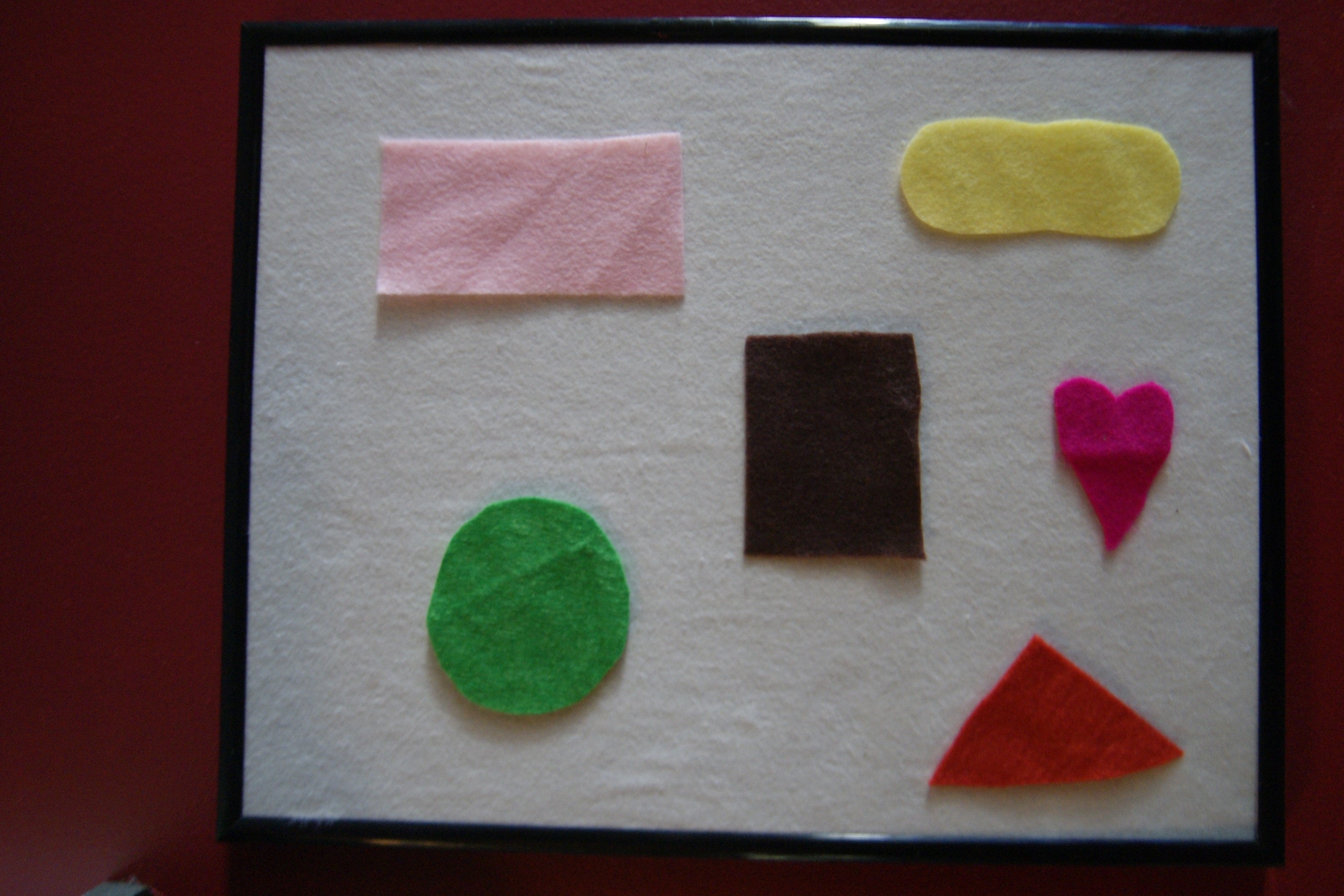 Your framed felt board is now ready to hang or use on a table or lap. You can cut simple shapes for a matching game, or print silhouette images from a search engine, and use them as a template to cut play pieces.