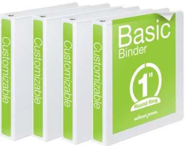 Wilson Jones Round Ring View Binder, 1 Inch, Basic, 362 Series, Customizable, White, 4 Pack $10.99