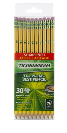 Dixon Ticonderoga Wood-Cased 2HB Pencils, Pre-Sharpened, Box of 30, Yellow (13830) $5.72