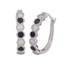 Sterling Silver Black and White Cubic Zirconia Hoop Earrings