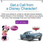 Free Disney Character Phone Call To Your Child You can either have Minnie Mouse or Finn McMissle from Cars 2 call your child.