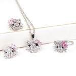 SODIAL- Silver Kitty Rhinestone Crystal Fashion Jewelry Set with Pink Bow – Ring Earrings Necklace 3 in 1 Set ONLY $2.04 + Free Shipping