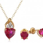 XPY Gold Plated Silver Created Ruby Heart Stud Earrings and Pendant Necklace Set, 18″ List Price: $95.00 You Save: $71.01 (75%) Length of chain= 18″, Length of Earrings= .24″ width of earrings= .24″, Length of pendant= .61″, width of pendant= .32″
