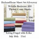 Living Frugal with Erika recently reviewed a Drew 6-Piece Comforter Set from BrylaneHome. BrylaneHome has agreed to sponsor a giveaway for a 300 Thread Count Wrinkle Resistant Sheet Set to one lucky winner! The winner will get to select the size and color! I don’t know about you guys but my Mom taught me that Continue Reading …
