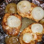 Pork Chops (tender, Oven-baked) Ingredients: 4 Loin pork chops; (up to 5) 2 large Onions; sliced 2 Eggs 1 cup Flour Salt; and pepper to taste 2 cubes Chicken bouillon 1/2 cupBoiling water Pork Chops (tender, Oven-baked) Preparation Dip chops in beaten egg and then in salted, peppered flour (cover well); add Continue Reading …
