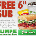 Blimpies Free 6″ Sub Coupon