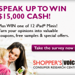Shopper’s voice is desperatly looking for new panalists! They are offering a chance to win a $15,000 grand prize or 1 of 12 iPad Minis!! If your not a member yet then it’s a great time to join. Sign up and submit surveys for exclusive rewards like free samples, money-saving coupons and special offers Take Continue Reading …