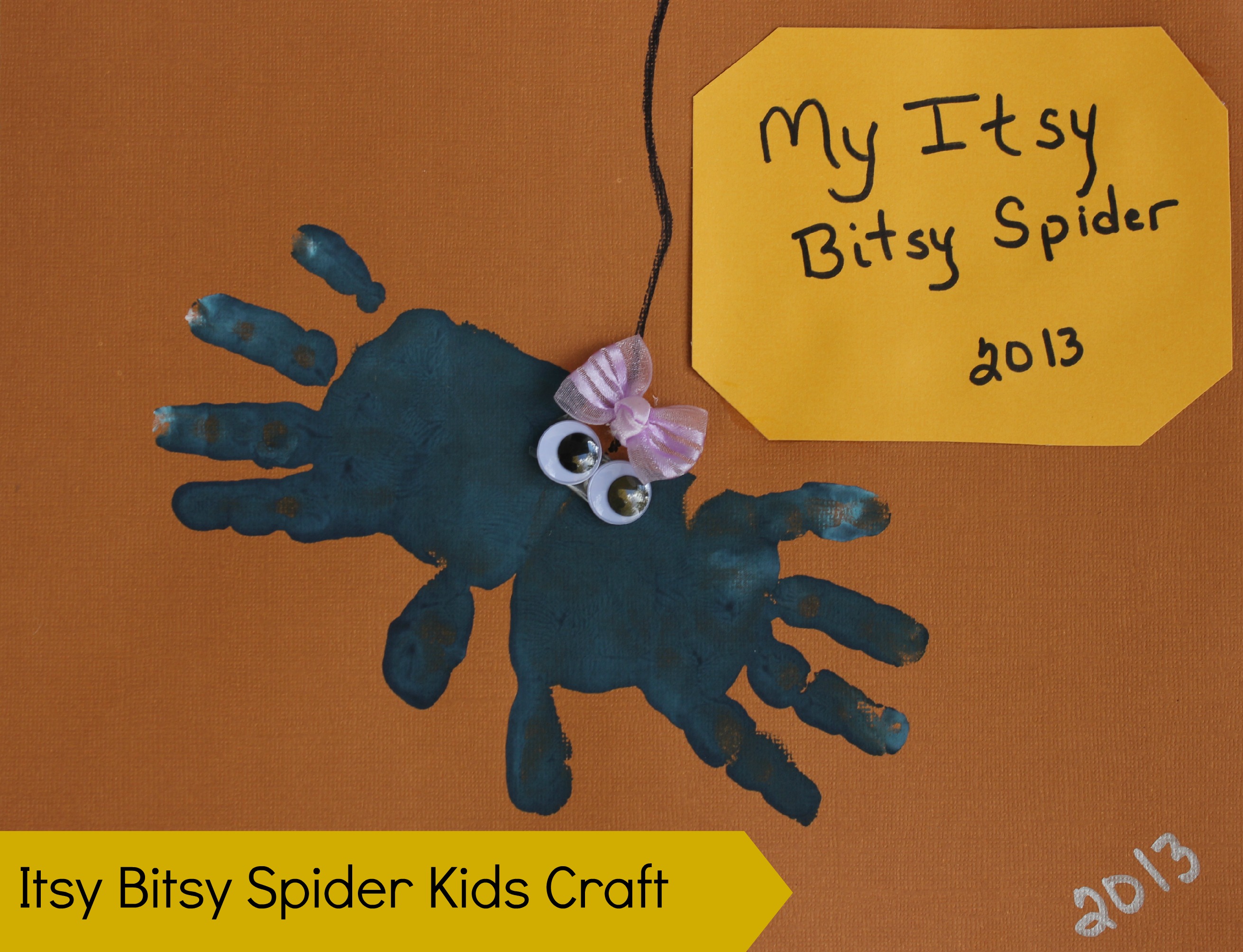 2) Take the other hand and repeat pressing it down going in the opposite direction with the palms touching. Now set your craft aside and spend some time singing with your child while the paint dries. Another fun activity is crawling around on your hands and knees exploring the world from a spiders point of view.