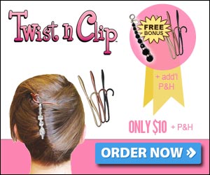 The Twist ‘N Clip, available in black, bronze and blonde, helps you style and hold your hair with a touch of glam!