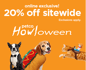 Wow!! Found a super deal at Petco! 20% off site wide + free shipping on orders over $49!!