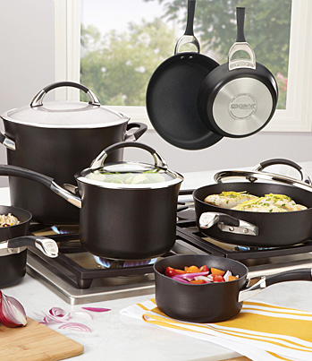 Load up your kitchen with a revolutionary cookware brand that continues to expand the boundaries through culinary innovation. Circulon was first introduced in 1985 as the first hard-anodized, nonstick cookware on the market, and has since tailored its line to fit the needs of the 21st century home chef. Promoting a healthy lifestyle by delivering high performance food release without the need for oils and fats, this patented line of saucepans, skillets, grill pans and so much more will guarantee long-lasting use with their nonstick coating that’s guaranteed not to scratch, stain or chip.