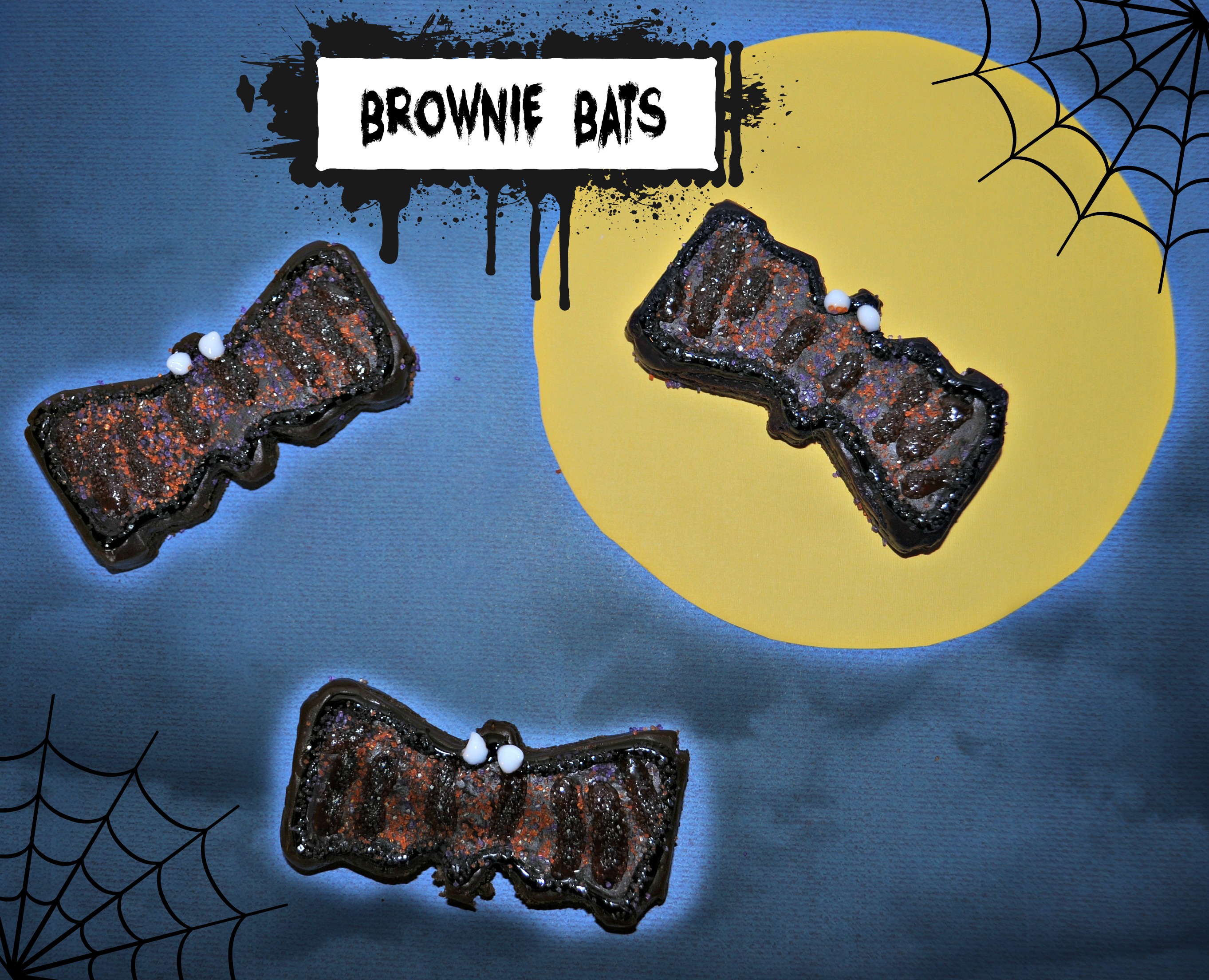 Pipe icing around the outside silhouette of each brownie (I used black icing). Sprinkle black sprinkles over the icing