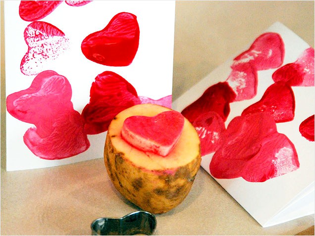 What you’ll need: Cardstock, paint, potato, heart shaped cookie cutter, paper and a small pairing knife