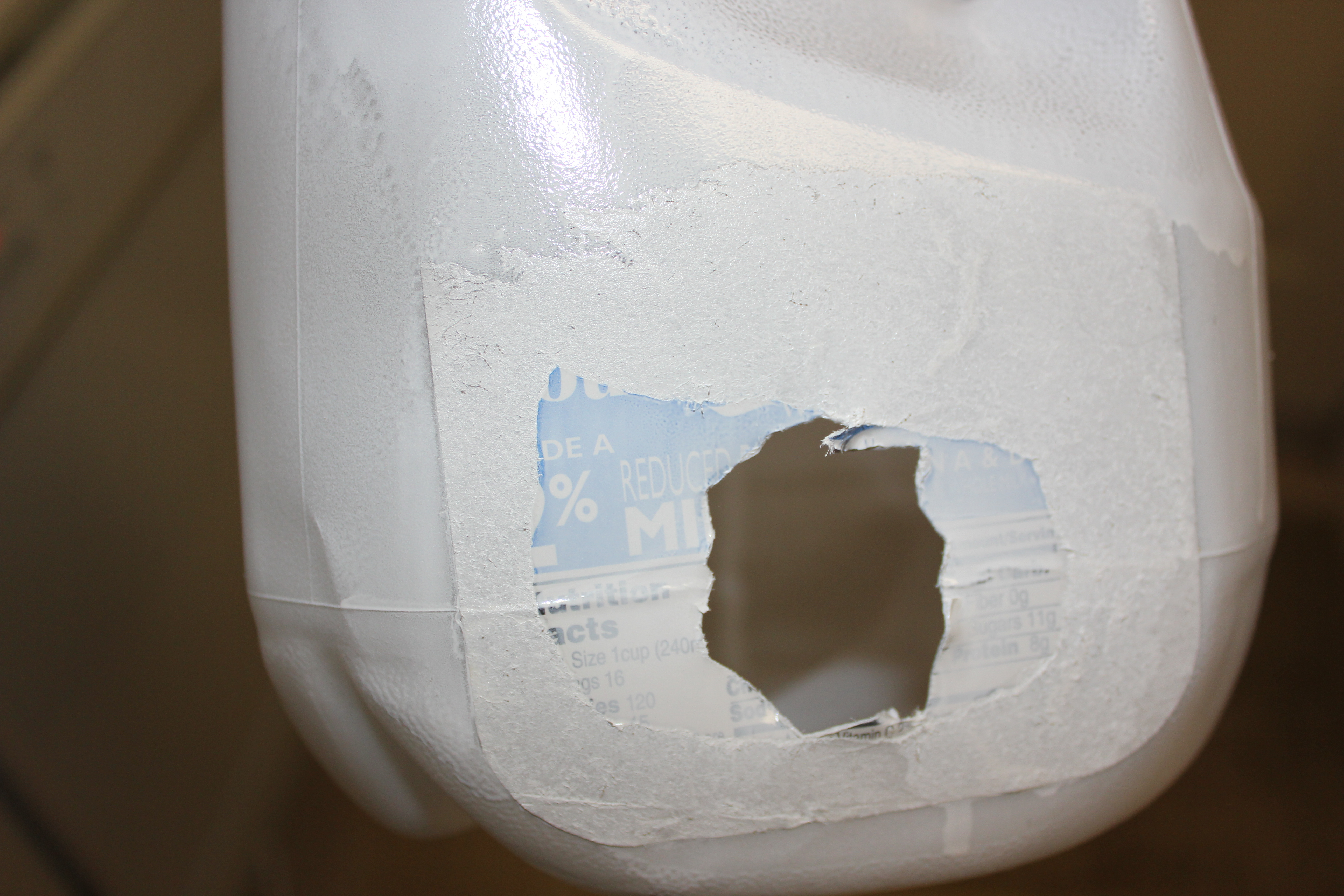 through to make them light up. Cutting the hole in the jug was not the easiest or safest task so we let Dad do that for us. We made a hole about 1 1/2 inches in diameter and it seemed to work out well.