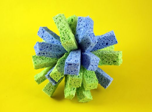 - Take your piece of string and tie a tight knot in to center of your sponges