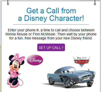 You can either have Minnie Mouse or Finn McMissle from Cars 2 call your child.
