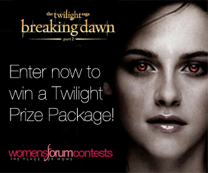 Enter to win a Breaking Dawn Part 2 Prize Package that includes dinner and a movie for four and exciting Twilight merchandise! Refer your friends for more chances to win – for every friend you refer, you will receive an additional entry in the sweepstakes.