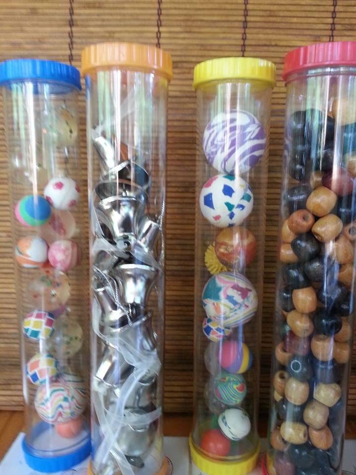 So what do kids need to do with four clear tubes?? Well there are tons of things to do with them! They come with solid lids that fit on the end so you can actually put liquid in them and they also come with a vented lid to stimulate the nose… possibly with a flower or maybe add in some herbs and spices or some essential oils. Of course you can also put in anything solid and colorful!!!  When we first received the tubes we were pretty excited to try them out so off we went on a hunt to find objects to put in the tubes for little Ms. Charlee Ann to try out. She is always fascinated with her sister’s ball collection. Her sister collects the tiny bouncy balls and Charlee Ann is never allowed to play with them because they are still a choking hazard for her. 🙁 So we filled 2 of the tubes up with little bouncy balls and you should have seen her face light up!! She got the biggest grin on her face and looked at her sister in amazement and said really loud …. BALLS!! So then we found some beads and added them to another one and filled the last one full of bells. Every single one of them was a hit. We were able to shake them all and hear different sounds and look through the clear glass and see all the different colors! We had a ball….no pun intended.