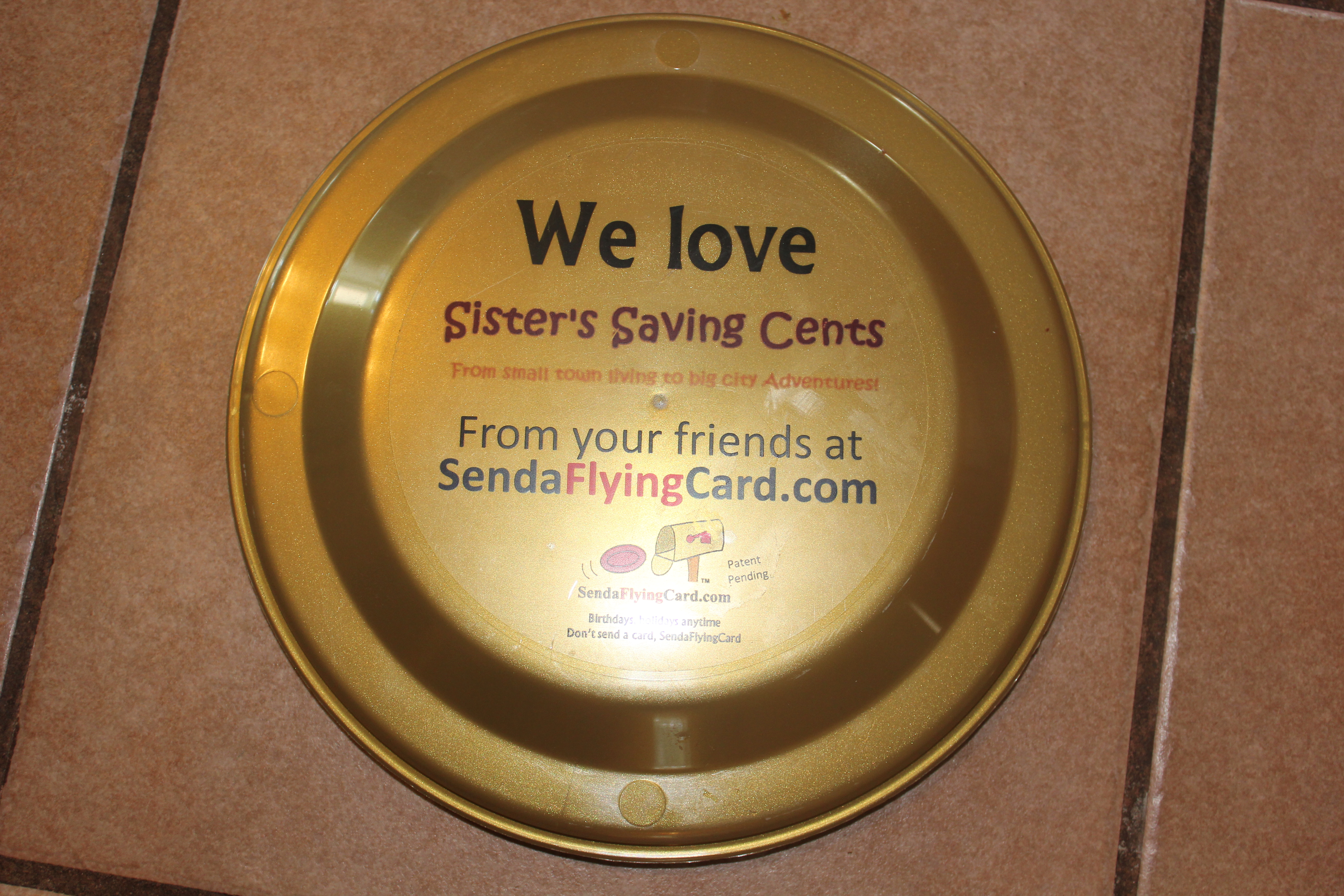 Boy were my kids excited when we went to the mailbox yesterday. I hadn’t told them about the Flying Card that was on it’s way to our home. Best of all is it said “We love Sister’s Saving Cents!” So already it was getting a thumbs up from me. LOL! Really it is a pretty cool item. You order your special someone a Flying Card (frizbee), personalize it, then they send it directly to them. Yup you heard right the Flying Card is sent directly to their mailbox. So they get a card and a gift all at once. A child would especially like it, they love getting anything in the mail, let alone a toy!! 🙂