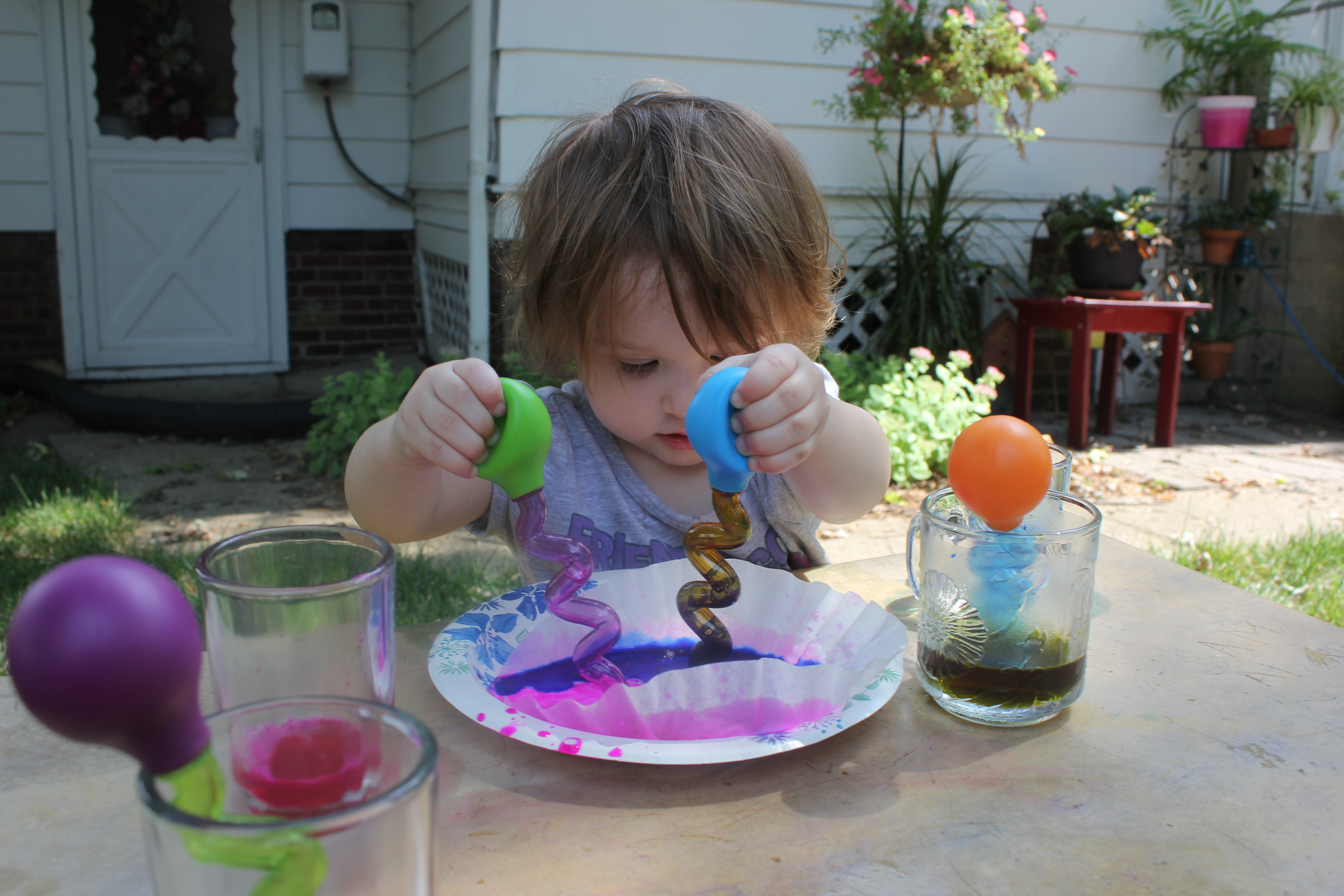 These droppers have turned into one of Charlee Ann’s favorite toys. She wants to use them all the time, even in the bathtub which is a lot less messy! LOL She wants to drink with them, play with them, paint with them and even give her pretend friends drinks with them. The possibilities are endless with the Twisty Droppers.