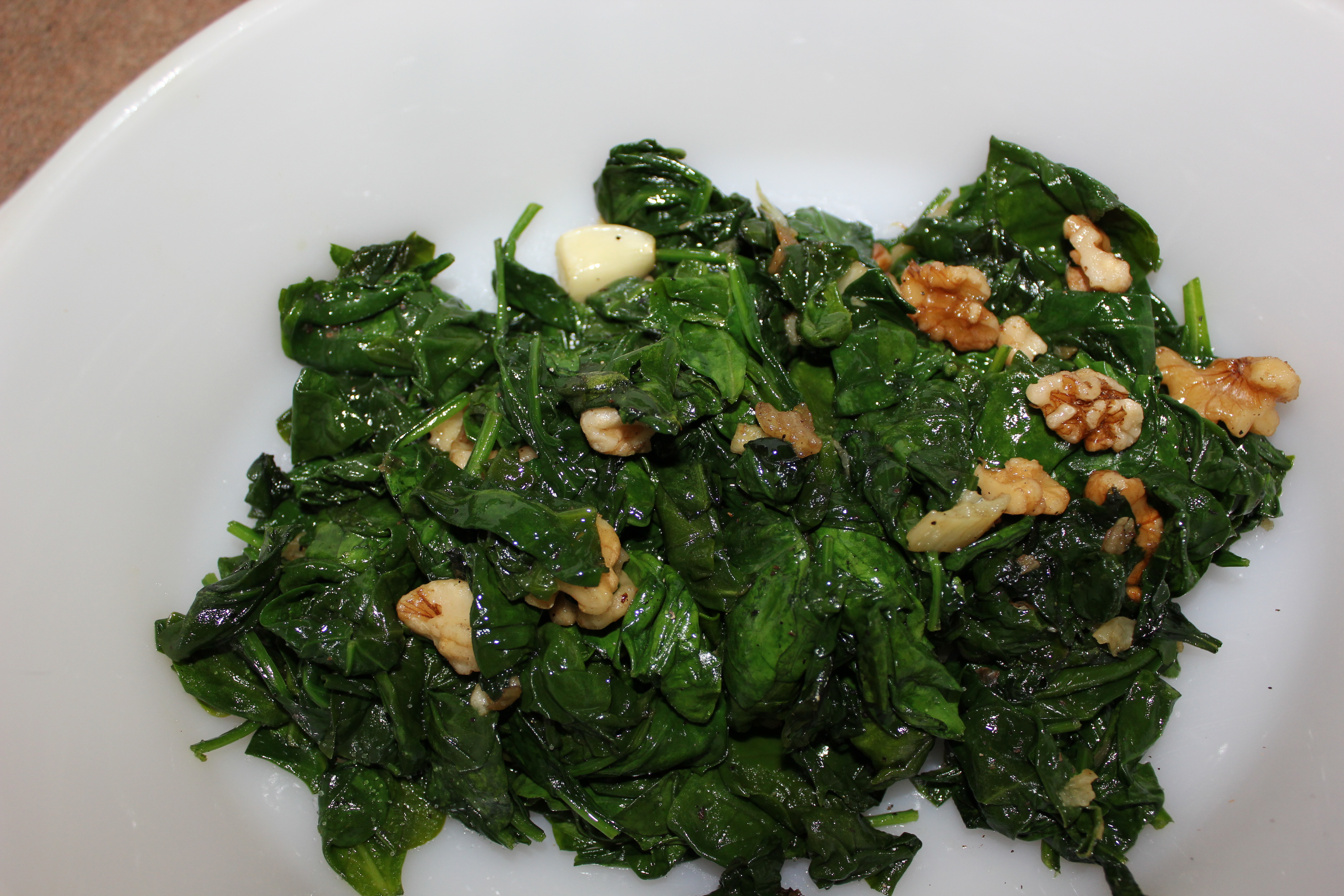 Spinach (as much as you can fit in the big saute pan and then tons more)