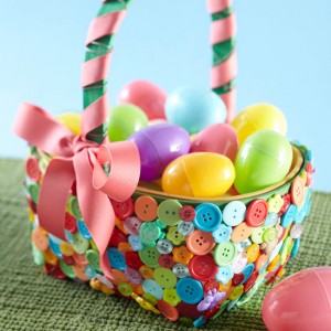 Dig through your spare button stash for this so-easy Easter kids’ craft. Choose a simple wooden basket, and glue buttons in all sizes and colors onto it for a unique and colorful look. When you’re finished, let the basket dry completely, then wrap a bright ribbon around the handle and tie a bow for a finishing touch.