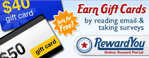 RewardYou! Earn 500 Points when you sign-up! Earn valuable points redeemable towards your favorite gift cards! Click Here