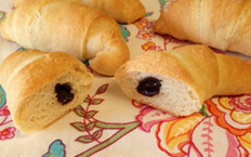 - Arrange roughly 6-10 chocolate chips in the center of the croissant.