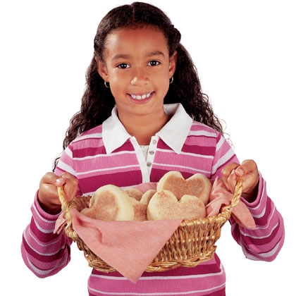 Topped with butter and jam, homemade English muffins are a real treat any day of the year–but these heart-shaped ones make a particularly unforgettable breakfast or snack for your child to make and share on Valentine’s Day. They’ll keep for several days stored in a plastic bag, or for several weeks in the freezer. That is, if there are any left by the end of the day.