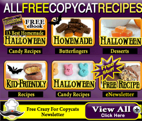 - Free eCookbook: The 13 Best Homemade Halloween Candy Recipes Free eCookbook, features 24 pages of our favorite copycat brand-name Halloween recipes sure to make your celebration is a spooktacular success + the Crazy for Copycats eNewsletter for FREE! Our free eCookbook, 13 Best Homemade Halloween Candy Recipes, includes some of the most sought after Halloween candy recipes around, which also happen to be our favorite recipes as well. In this free eCookbook you’ll find recipes Homemade Hershey Kisses (p. 5), Candy Bar Caramel Corn (p. 9), Homemade Butterfingers (p. 11) and many more sweet treats!