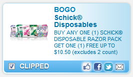 B1G1 Free Schick Disposable Razors Printable Coupon