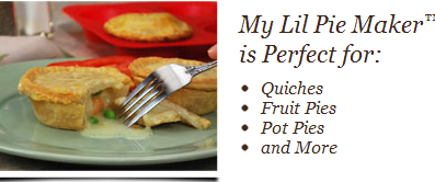 I am so excited!! I just ordered a “My Little Pie Maker”!! Well actually I got 2 because they are having a B1G1 FREE on My Little Pie Maker so you get them both for $10!! Woot Woot!! That’s a smokin HOT deal!! I am going to keep one for myself and give the other one to my sister for Christmas (She is the real baker of the family). The first thing I am looking forward to making is individual chicken pot pies!! My kids are going to be so excited! 🙂 I am also having Thanksgiving Dinner at my house so everyone can have their own individual Pecan, Cherry or Pumkin Pie! You know when I find a great deal that I always share!! Head on over here and grab yours! Come back and let me know how your pies turn out!!