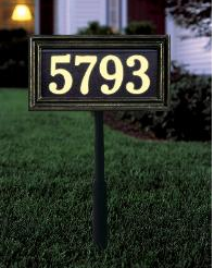They even have a few address signs that light up! This one has an internal light sensor that automatically turns on at dusk and back off at dawn. It uses 8 D-cell batteries (not included) but it says it will provide 5 months of continuous nighttime illumination. It can be a wall mount or it comes with a lawn stake for street side! That would make it really easy for someone to find your home! I just think it’s cute! 🙂 I believe anything that helps them find your home in an emergency is well worth the cost!