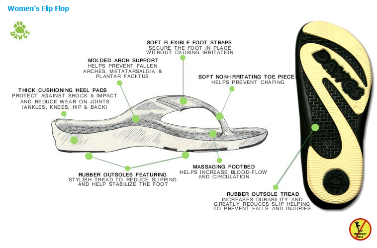 Let me tell you a little bit about the company. Dawgs brand is a rapidly growing manufacturere and distibutor specializing in high-quality and value-priced footwear.  DAWGS Brand’s mission has and continues to be a Foot’s best friend. With offices in Las Vegas, NV and Saskatoon, SK Canada and 8 retail stores they are a thriving company that is growing fast. They offer many styles and colors and have styles that will appeal to young and old alike. Dawgs Women’s Flip Flop’s are easy to clean with a rubber outsole that is non-marking. They are odor resistant with a super comfortable toe piece and also have a massaging foot bed.