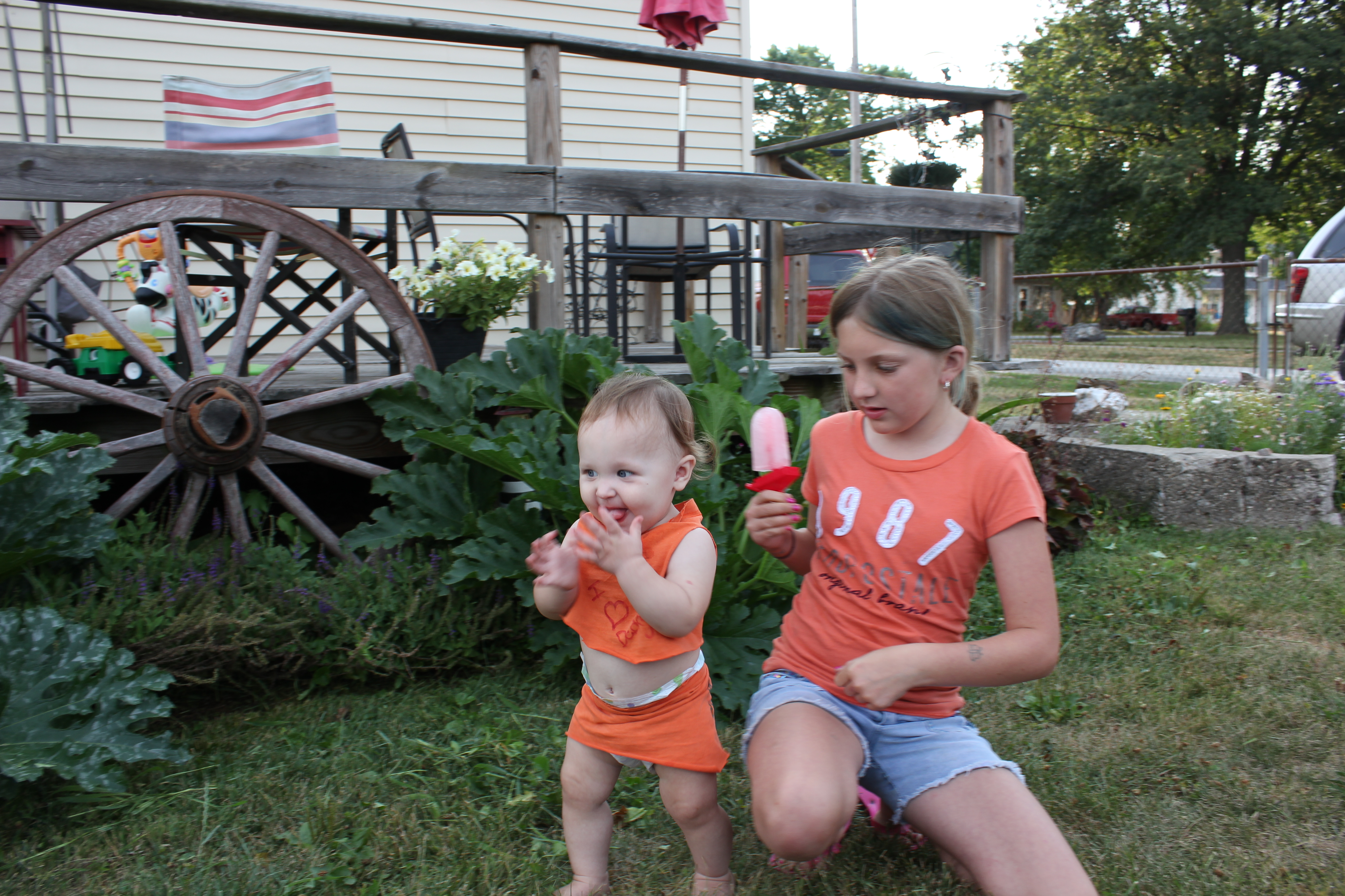 So I figured it’s about time I gave you an update on the girls! Alicia (right) is 12 now! She will be starting 7th grade soon. Now I’m sorta thinking that she is my future dress designer. If you look at Charlee Ann’s (left) little outfit and you look real hard you will see that Alicia made her this adorable little outfit out of the sleeves from her dad’s old t-shirt. I came home from the grocery store, pulled up and busted out laughing! It was the cutest outfit I had ever seen. 🙂 Here let me show you the back………………