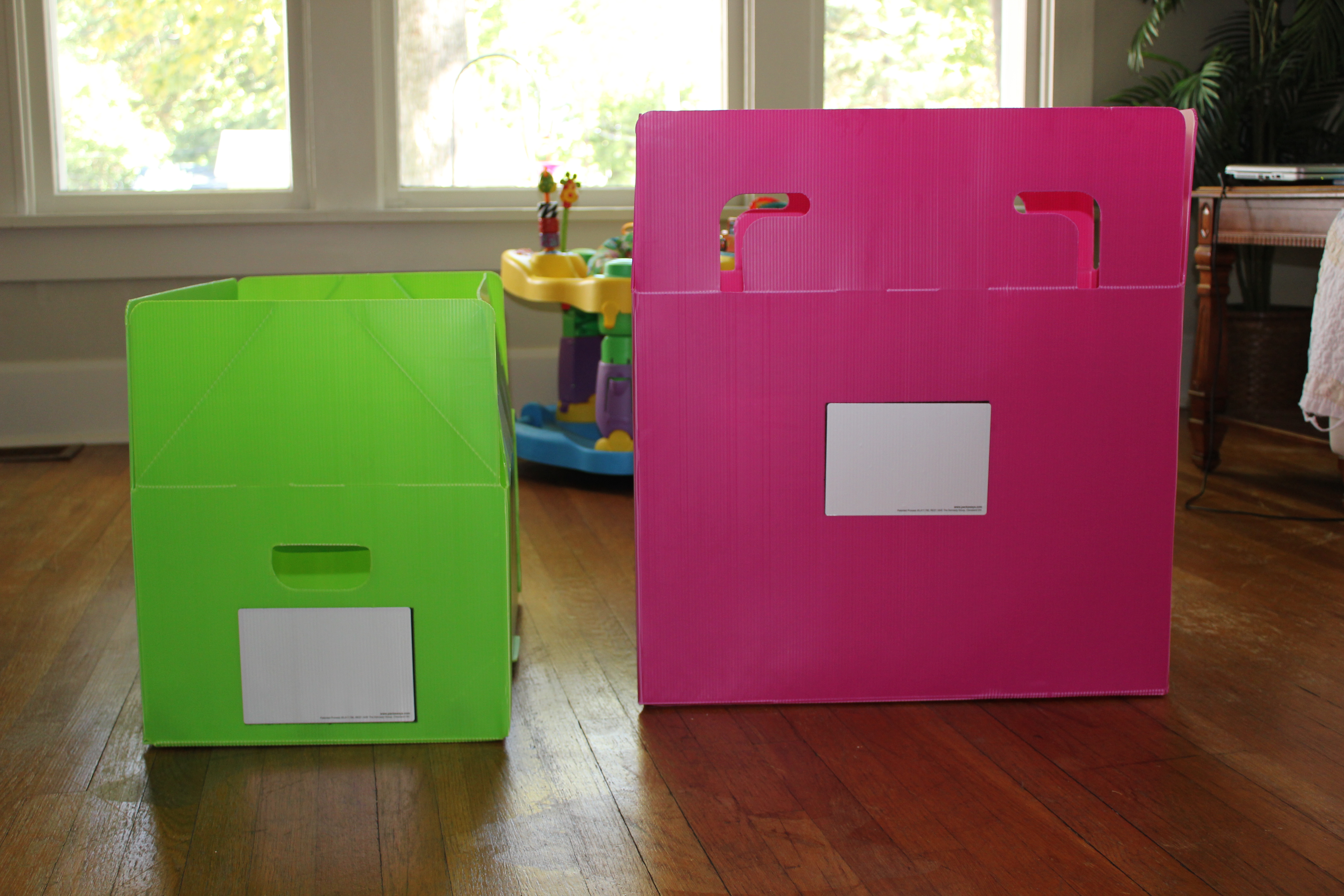 So by then I was really starting to like the reusable plastic storage containers. After the last trip I folded them up and tucked them neatly away until I needed them again.This happened pretty quickly when I started looking through one of my Rubbermaid tubs and realized that I had high school memories and photos that had found their way into my garage. I am usually very good with keeping photos in a clean, dry place but these had slipped through my fingers. The plastic tub had cracked on the side allowing bugs and moisture to creep in. Well I had to fix what I could and get it packed up into something that would fit on the main level of our home where the humidity is more controlled. So a light bulb idea flashed in my head and I grabbed the reusable plastic storage containers from Packaways! I put the memories in the larger box and the pictures in the smaller box. There is a handy little square on 2 sides that allows you to label what is inside which I really like. The photos and memories where a little heavy so I was a little fearful that the bottom would fall out but they didn’t budge or even look like they were stressed at all.