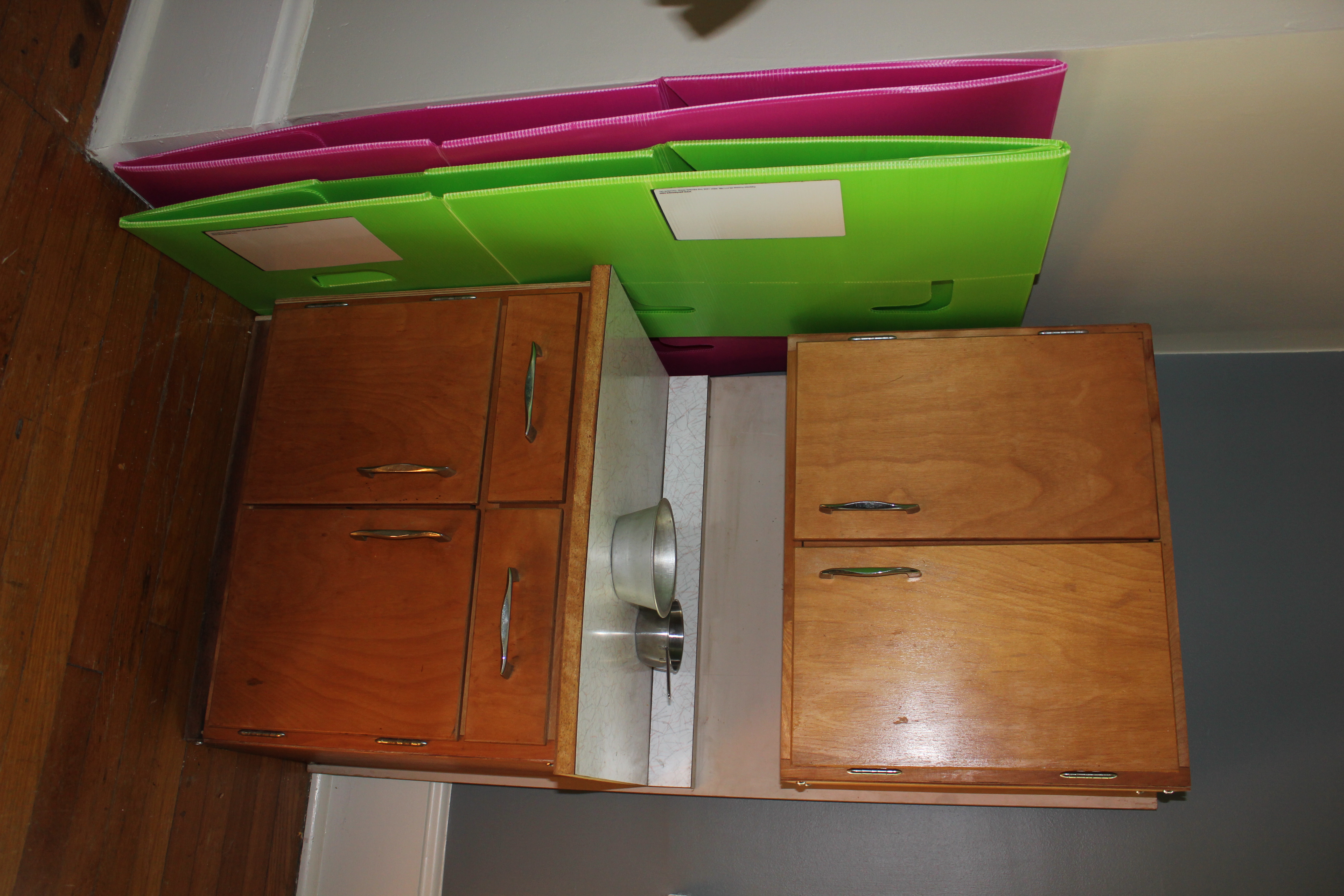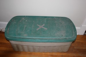 The picture to the right shows the box the photos and memories were found in. It is pretty beat up and messy and just a bulky eyesore to pack on the main level of your home. I have a pretty adequate amount of storage but this monster was huge! It wouldn’t fit in any of my closets and well the hubbie said he could find something to use it for in the garage. So out to the garage it went!